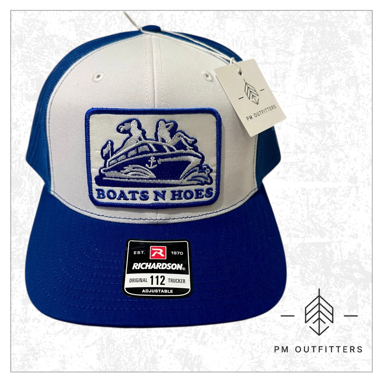 Embrace your inner Stepbrother with our Boats N Hoes Patch Trucker Hat! This Richardson 112 hat features a retro style embroidered patch, perfect for any fan of the cult classic film. Stand out from the crowd with a touch of humor and nostalgia. Prestige Worldwide!!