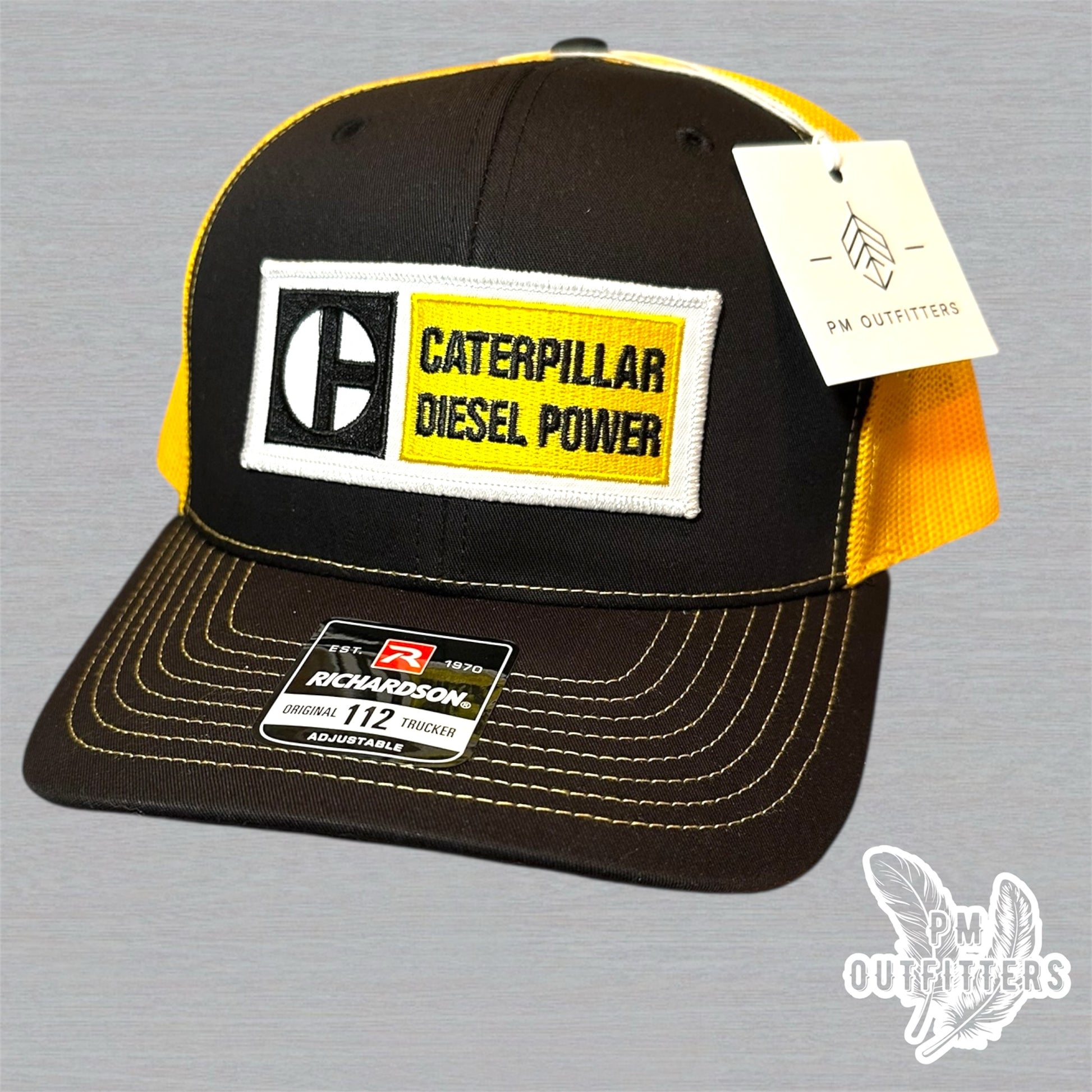 Caterpillar Diesel Power Trucker Hat - PM Outfitters Retro Patch | Richardson 112 Black Yellow CAT