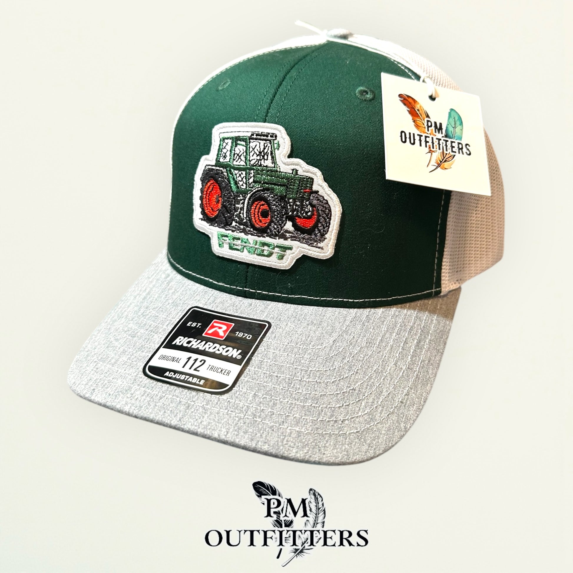 Fendt Tractor Trucker Hat — PM Outfitters Retro Patch | Richardson 112 Green Gray White Farm Heritage
