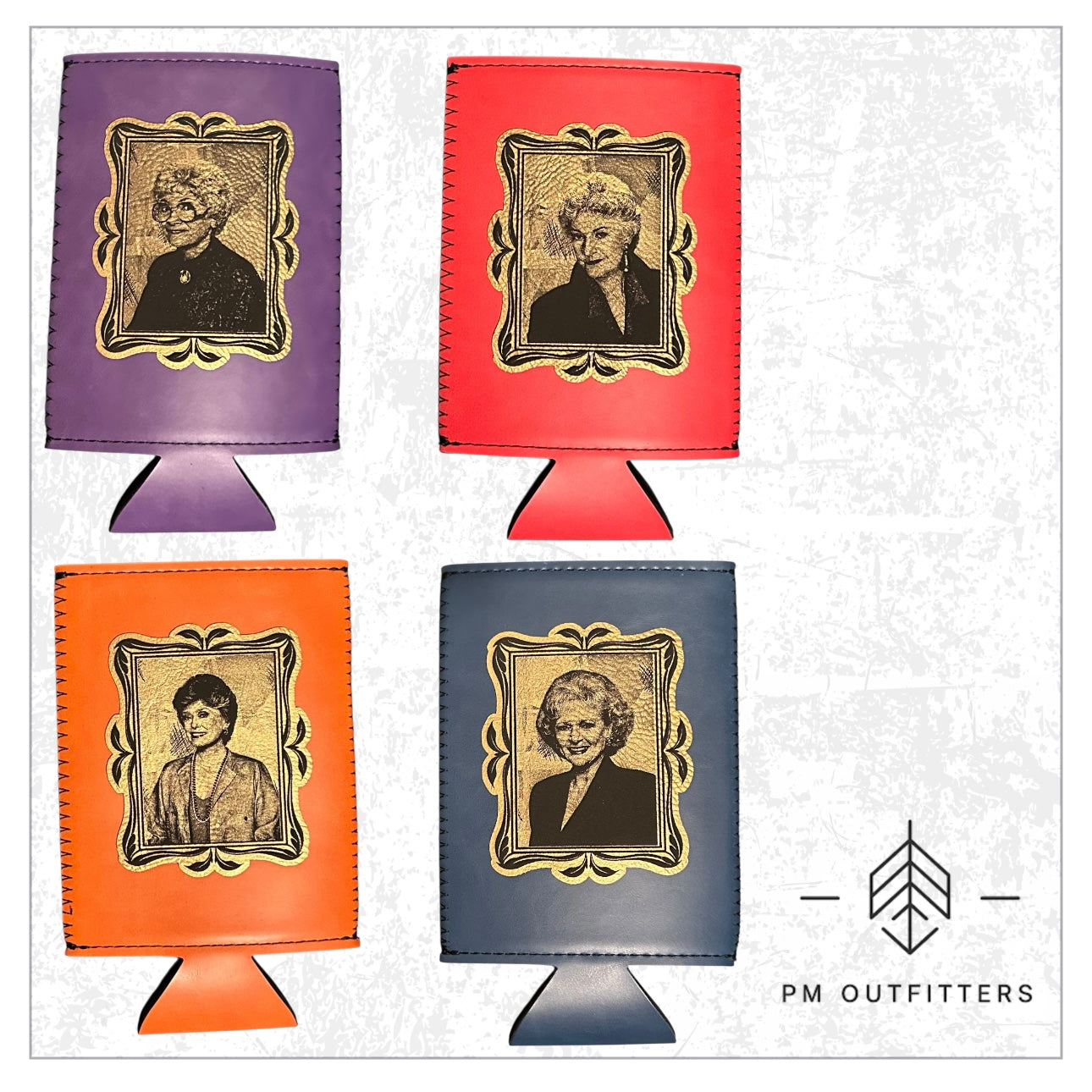 Introducing the Golden Girls Leatherette Slim Can Koozies - the perfect accessory for your slim cans! Each custom-designed gold leatherette patch featuring one of the iconic Golden Girls is adorned to a koozie in the color representative of each Girl’s personality. Collect all 4 for the ultimate Golden Girls fan experience!