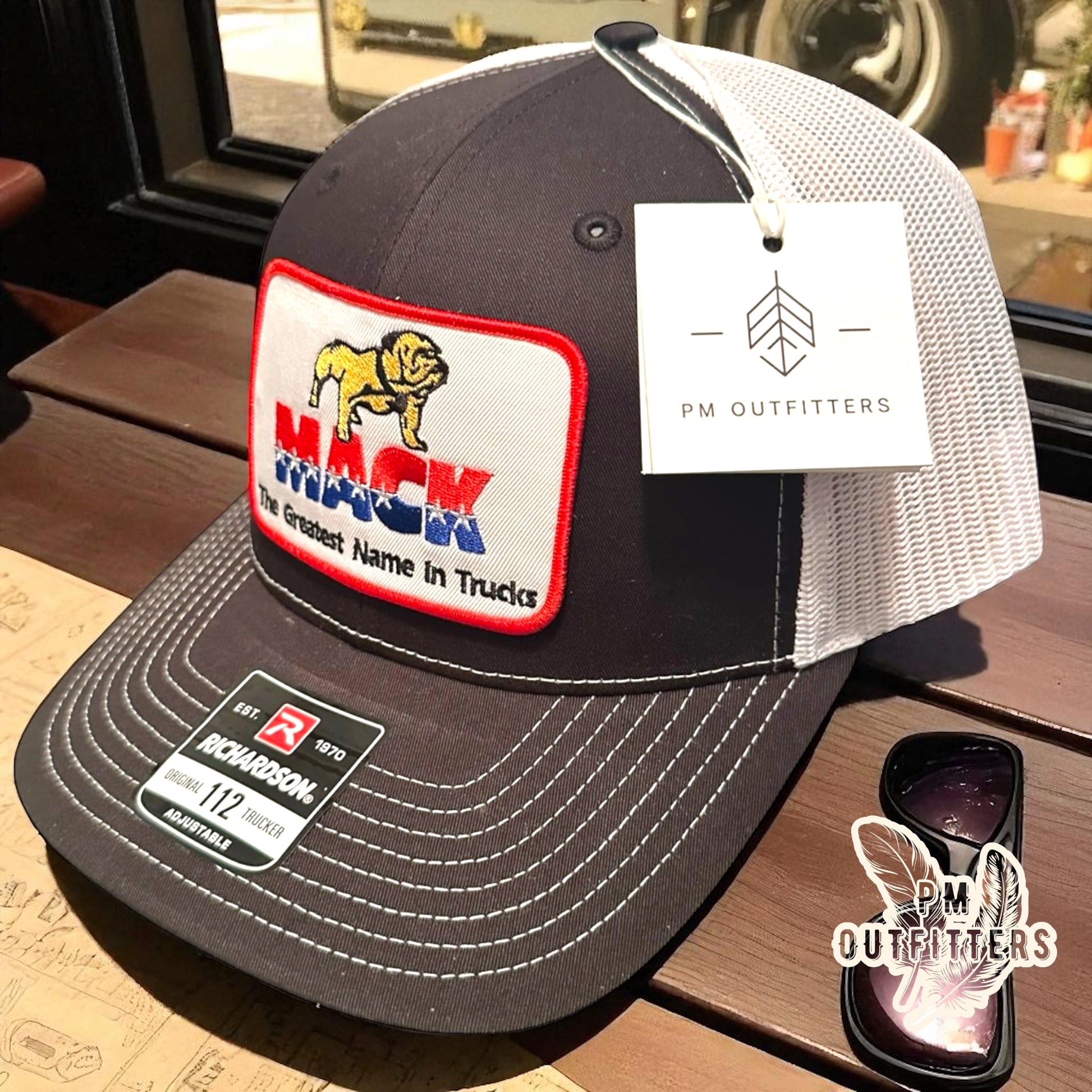 Show off your love for vintage with this Mack Trucks embroidered patch on a black & white Richardson 112 Trucker Hat. Made with quality materials, this hat adds a touch of nostalgia while keeping you cool and stylish on the road. Boost your outfit with this classic logo and embrace the trucking heritage.