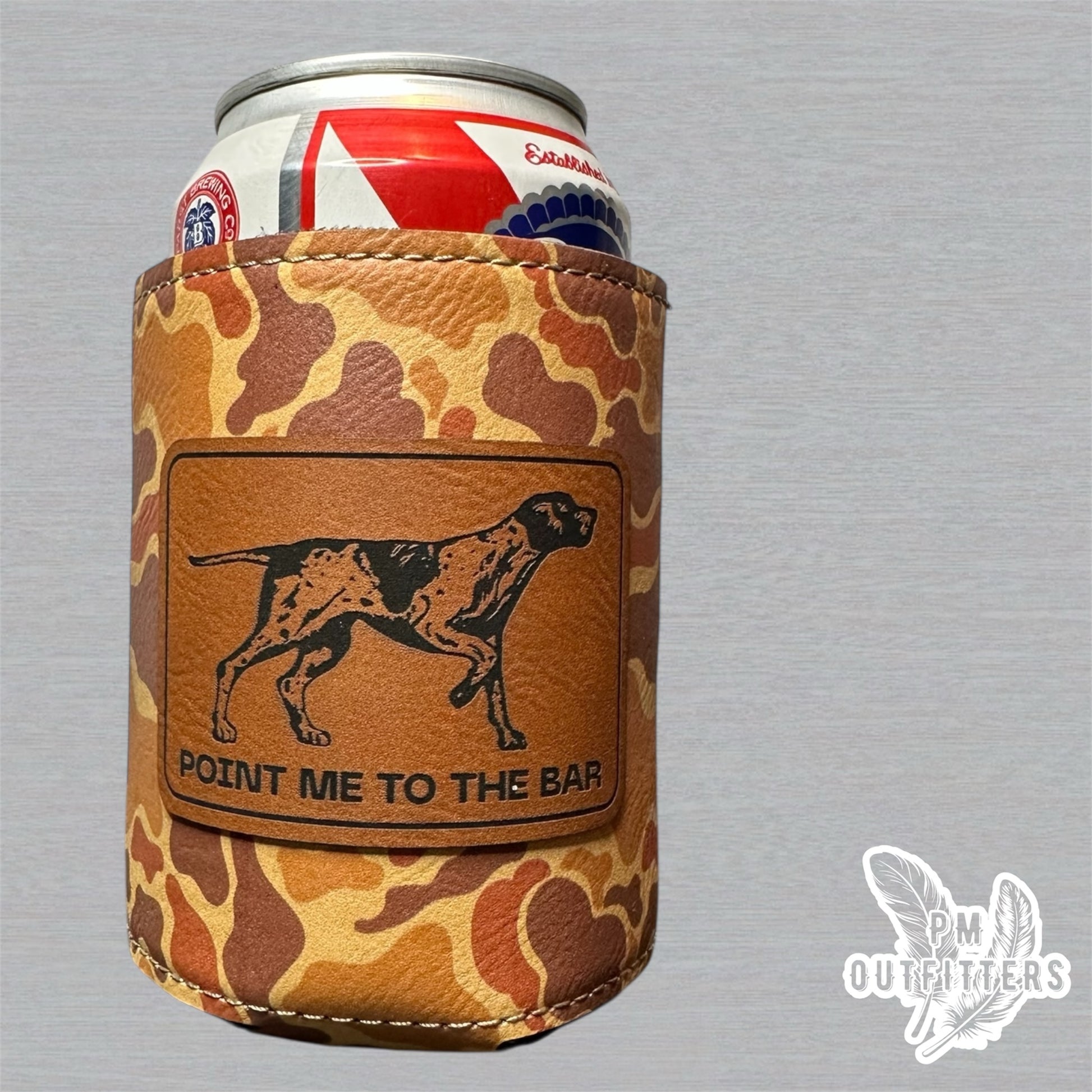 PM Outfitters Custom Laser Engraved “Point Me To The Bar” Premium Camouflage Leatherette Can Koozie
