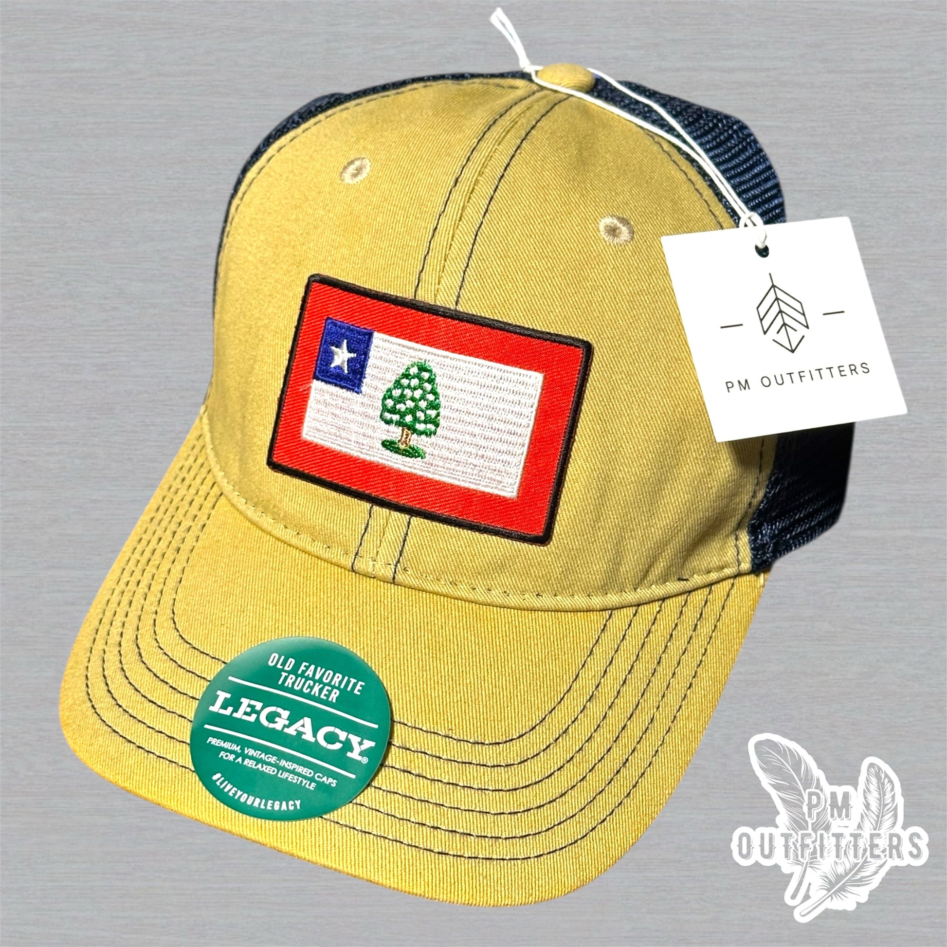 Bring Mississippi pride to your everyday style with this Khaki & Navy Legacy Old Favorite Trucker Hat, featuring a striking embroidered patch of the 1861 Mississippi state flag. Whether you’re a fan of Southern heritage, vintage Americana, or just love a good hat — this one’s made for you.