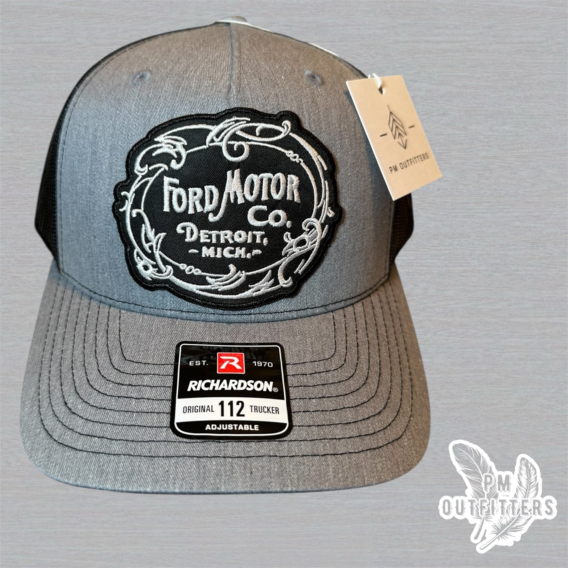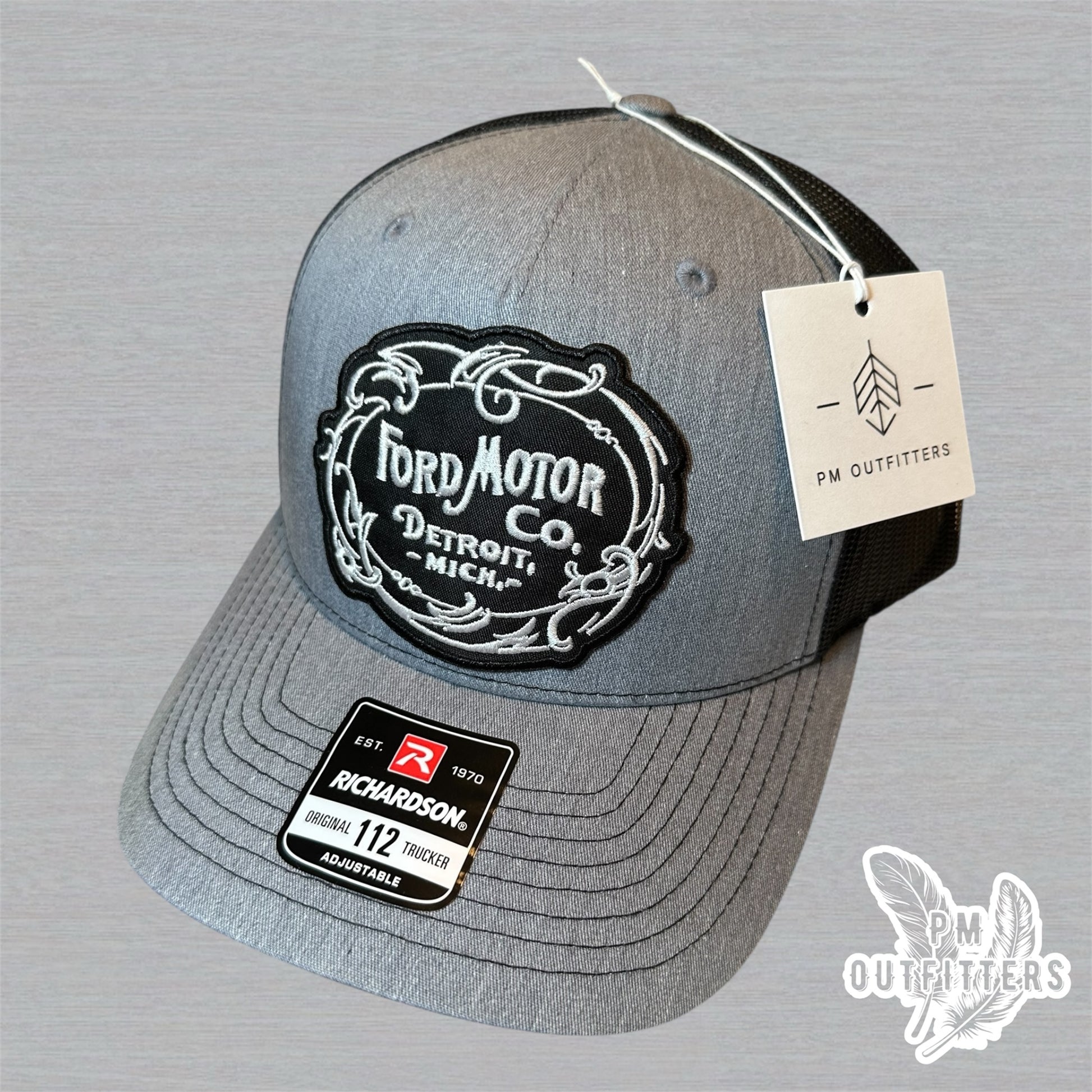 This Retro Ford Motor Co Vintage Logo Patch Gray & Black 5 Panel Richardson 112 Trucker Hat is the perfect accessory for any Ford fan. With a classic design and high-quality materials, this hat will keep you stylish and comfortable. Embrace your love for Ford with this must-have accessory.