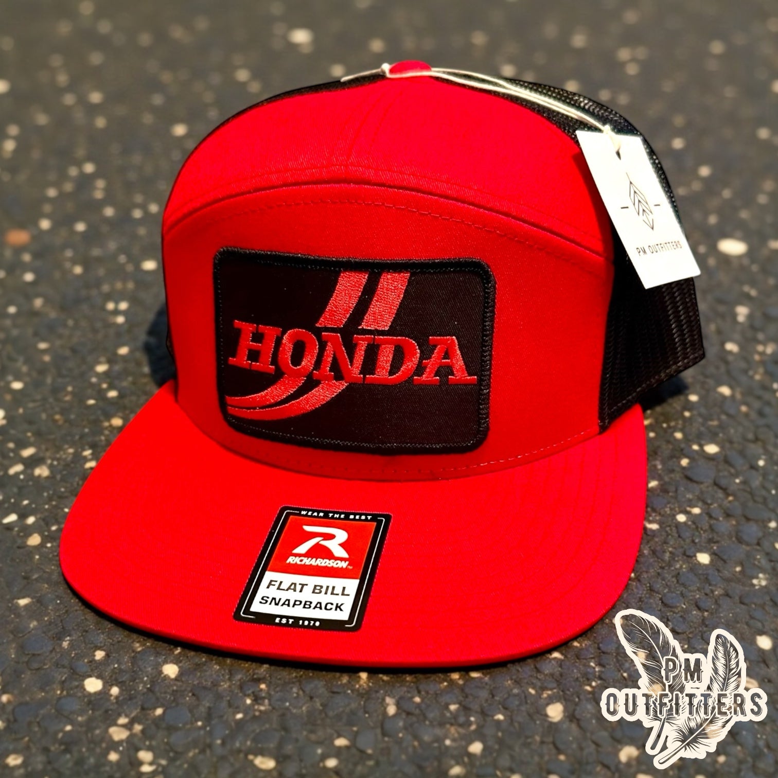 This hat is different: authentic racing logo, premium embroidered patch, Richardson 168 construction, racing red and black colors, priced for Honda fans.