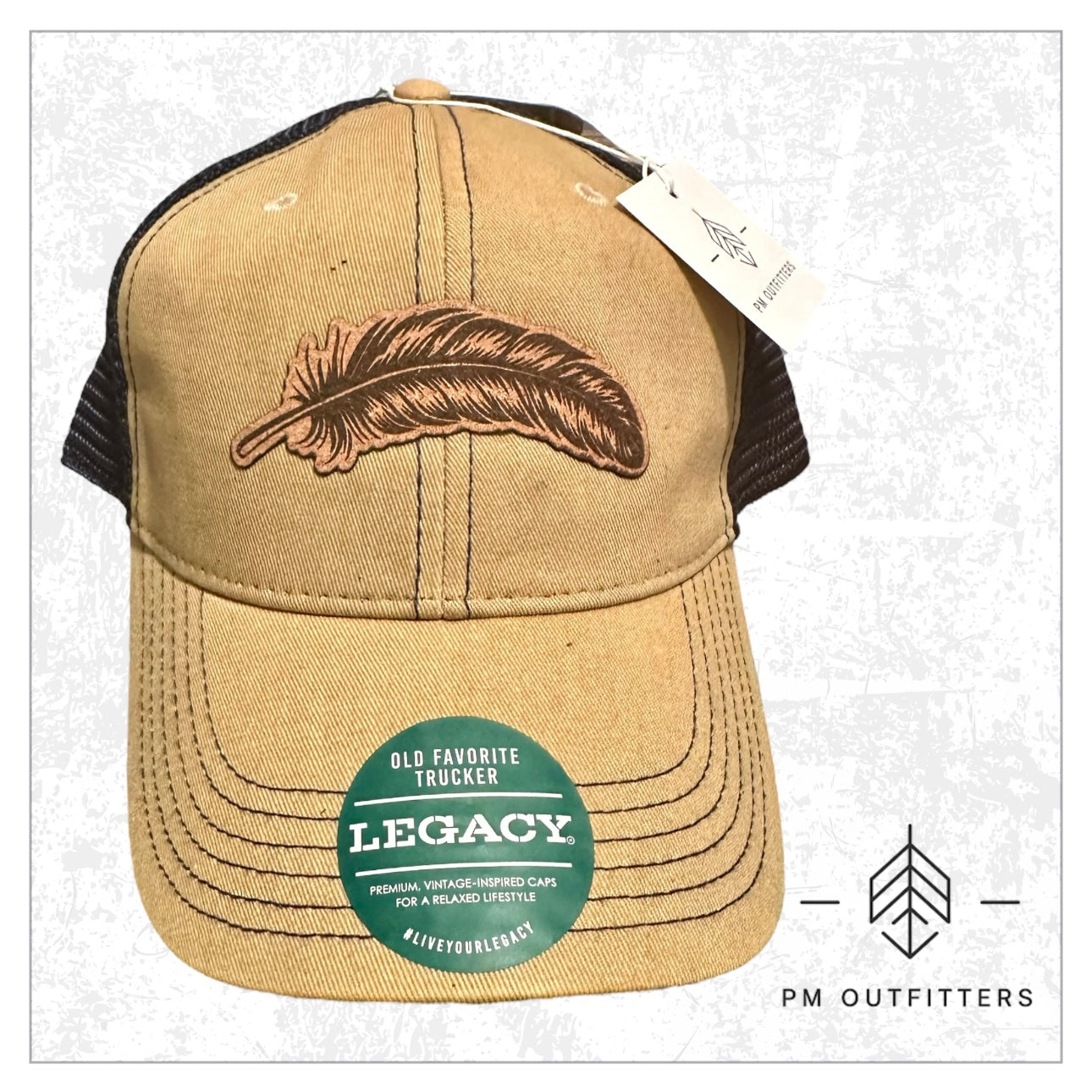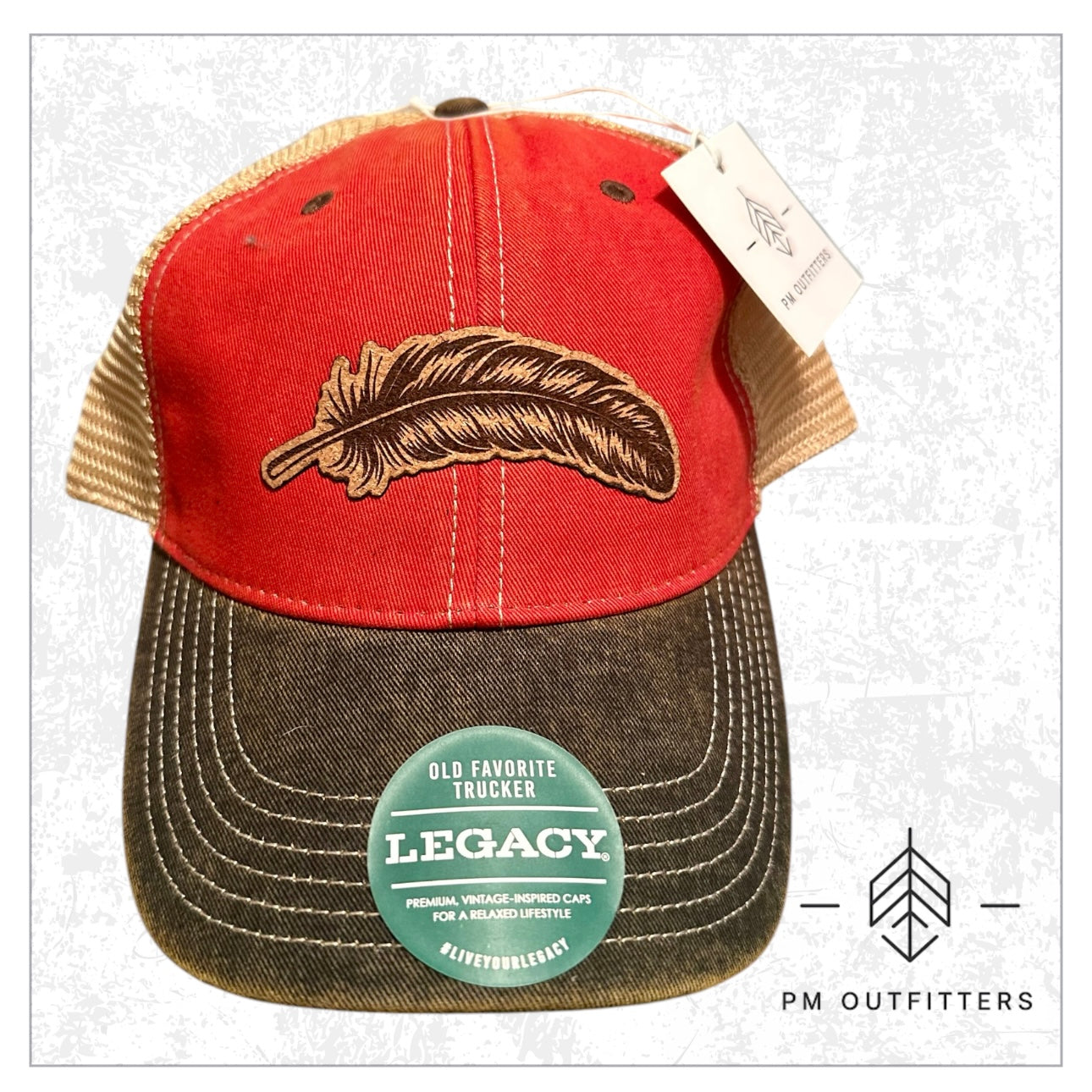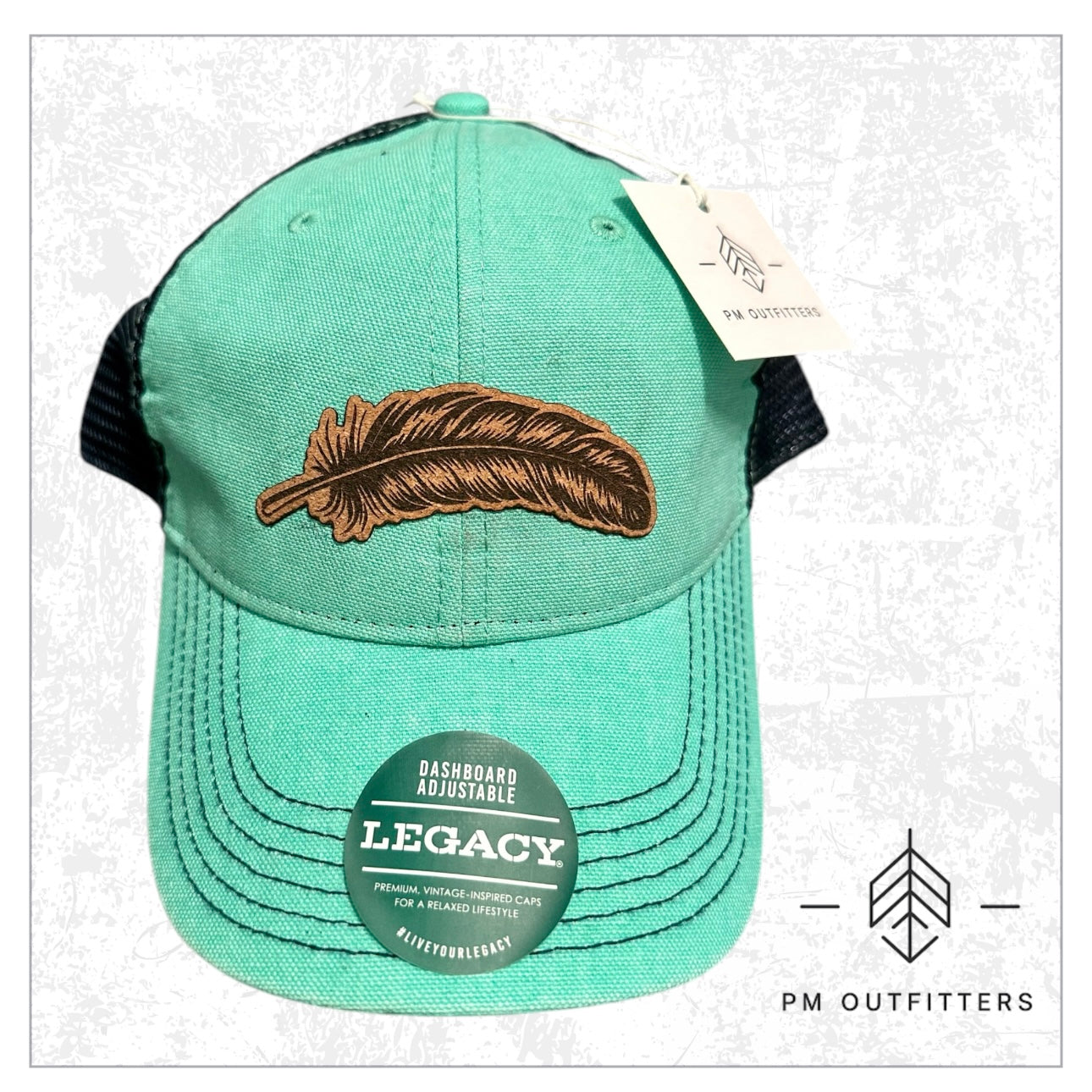 Introducing the Signature Feather Cork Leatherette Trucker Series from PM Outfitters. Our custom engraved feather logo is featured on a unique cork designed leatherette, adding a touch of sophistication to a Legacy low-profile trucker hat. Stand out in style and comfort with this must-have accessory. Perfect for summer, boat and beach days.
