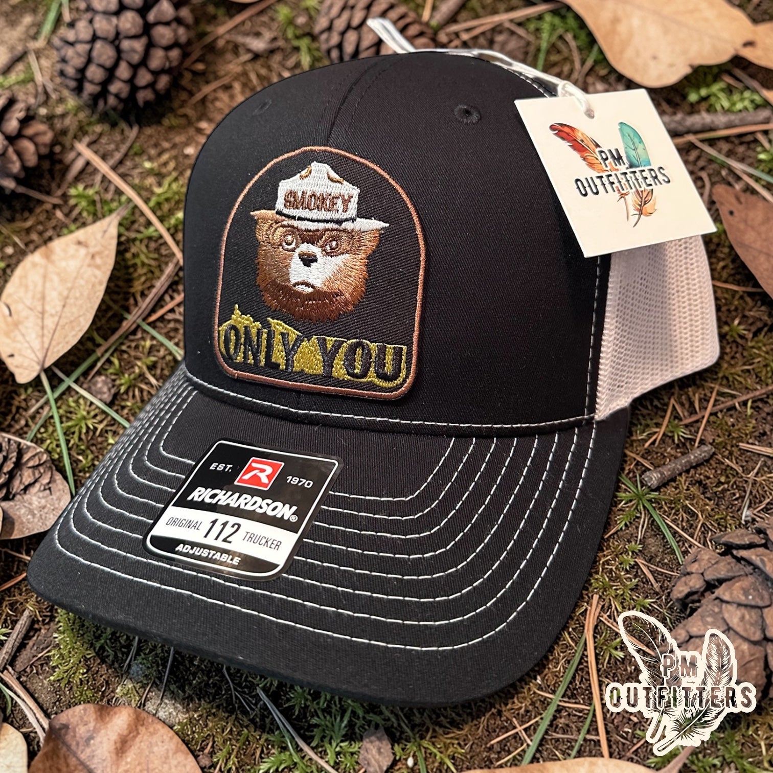 Smokey Bear Only You Trucker Hat — PM Outfitters Retro Patch | Richardson 112 Black White