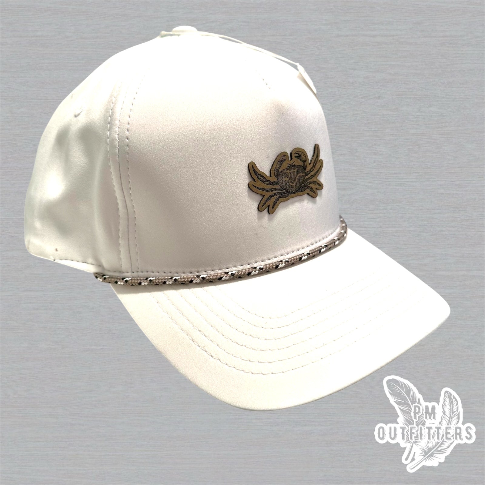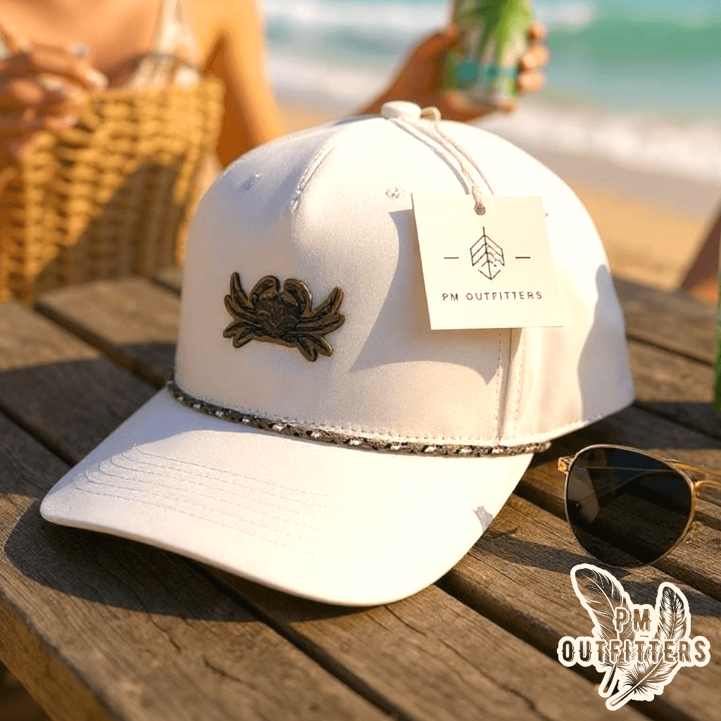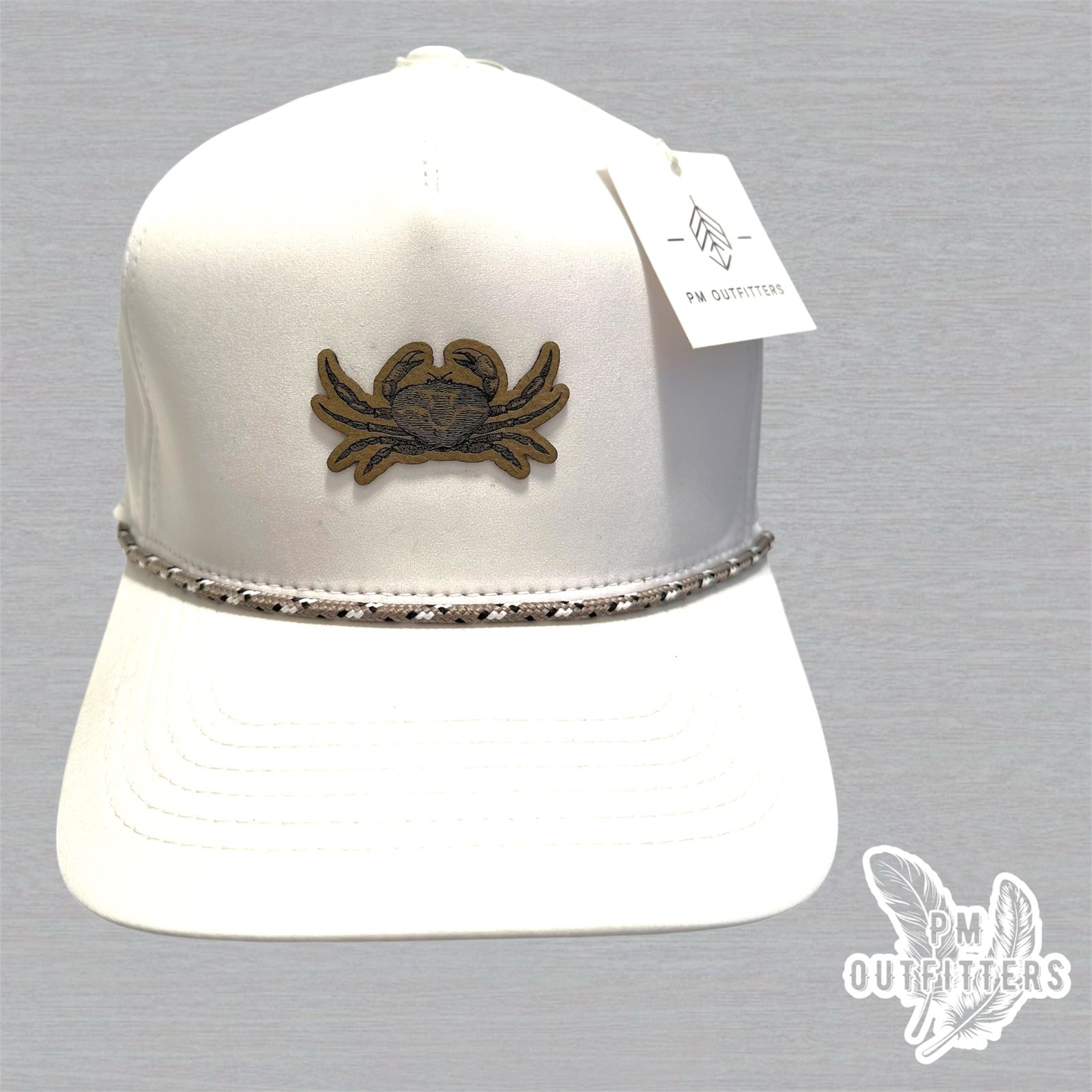 Custom-designed laser engraved vintage crab on Outdoor Cap performance rope trucker hat—moisture-wicking, stylish, and unique for outdoor adventures and everyday wear.