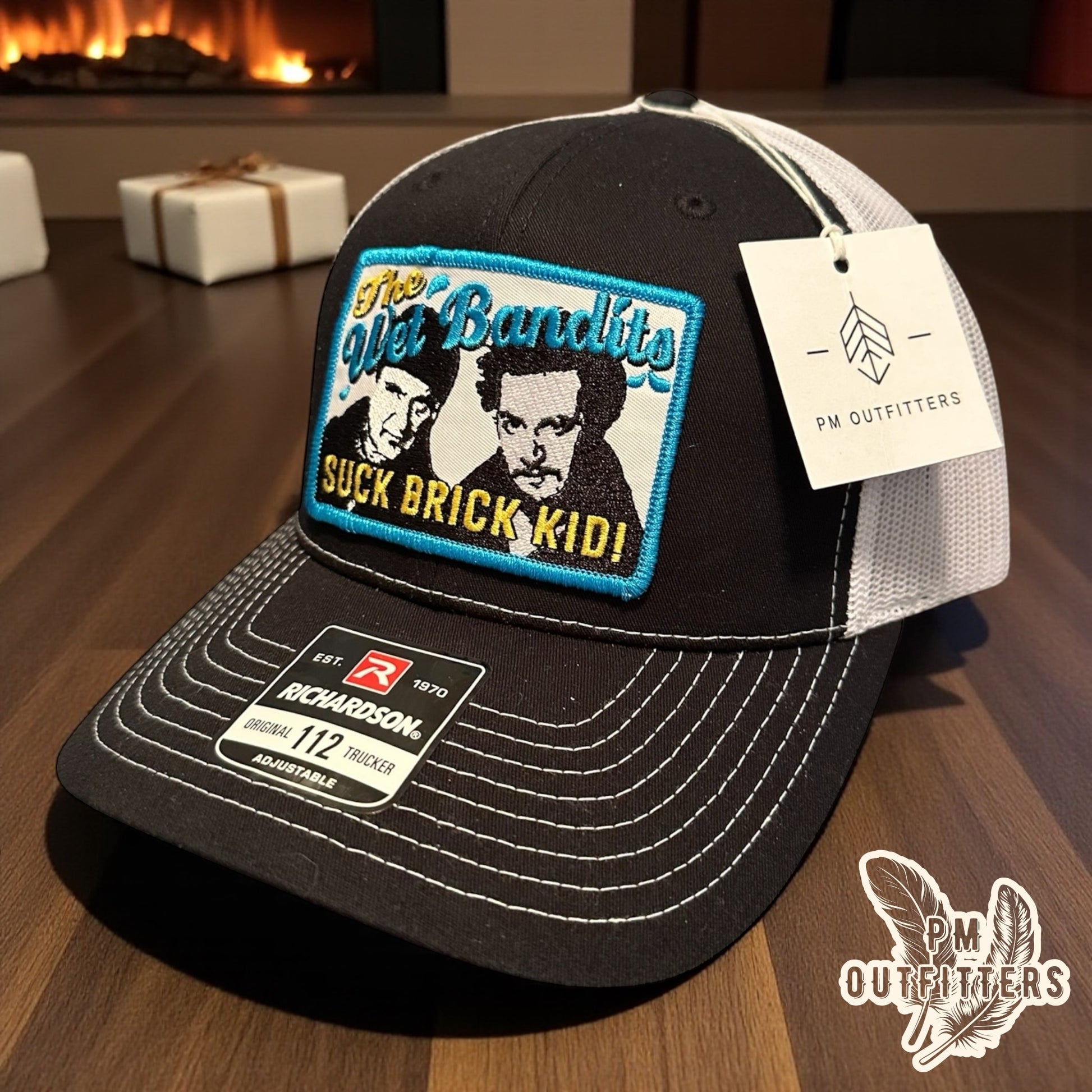 Relive one of the most iconic scenes from the beloved holiday classic Home Alone with this premium Richardson 112 trucker cap! Featuring the hilarious “Wet Bandits - Suck Brick Kid!” patch, this hat is a must-have for any Home Alone fan or 90s movie enthusiast.
